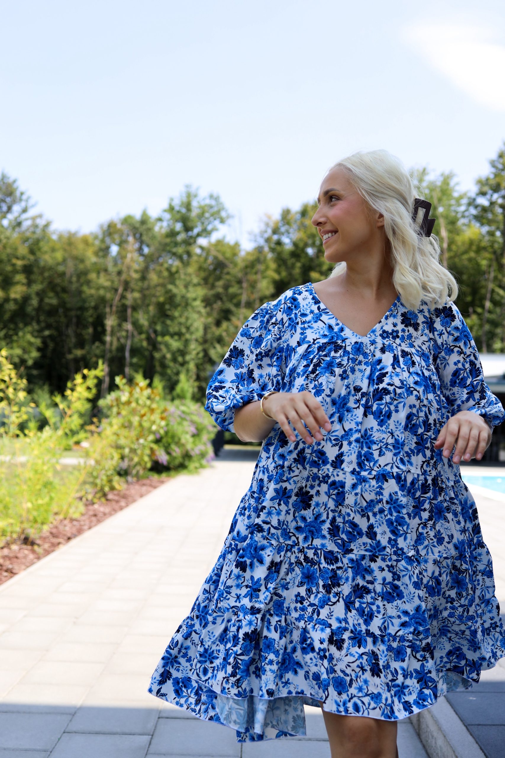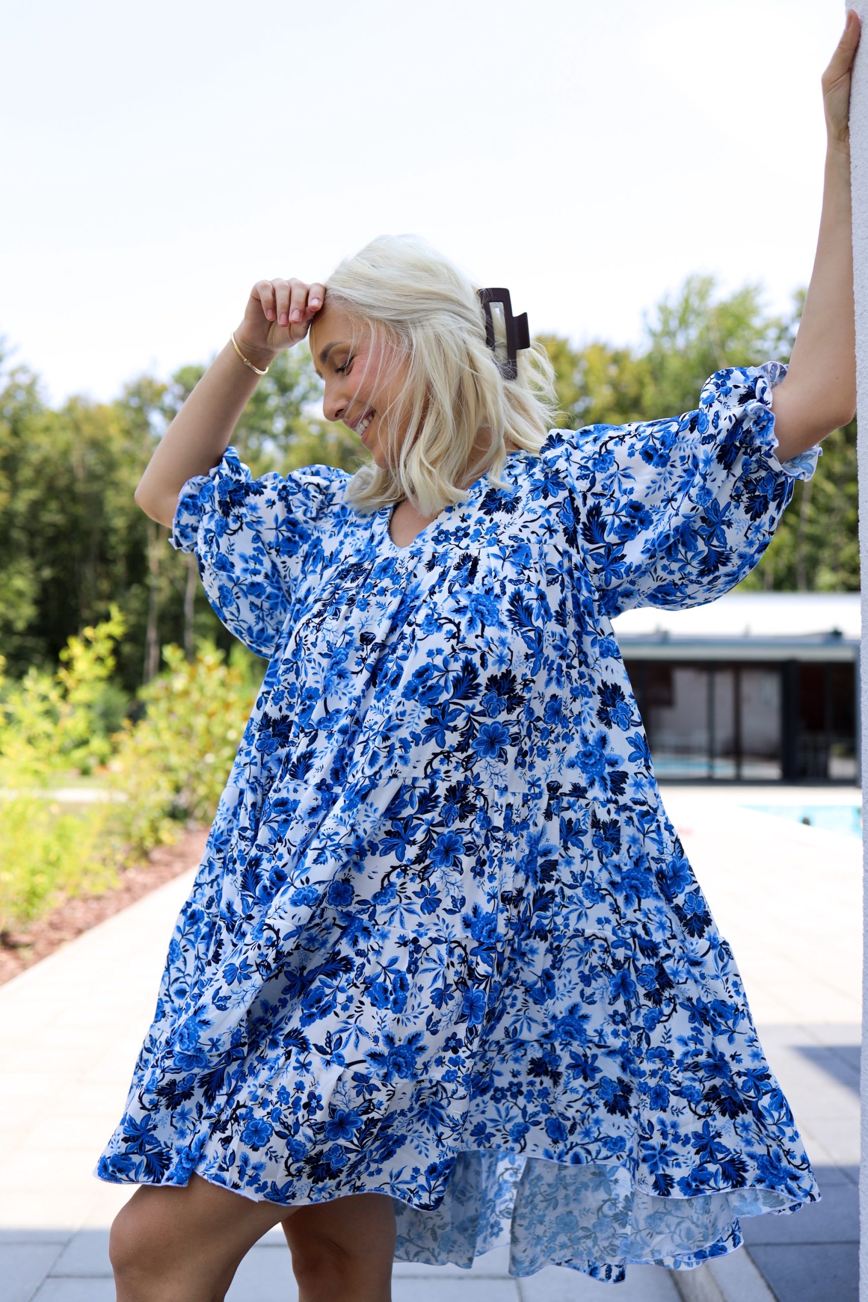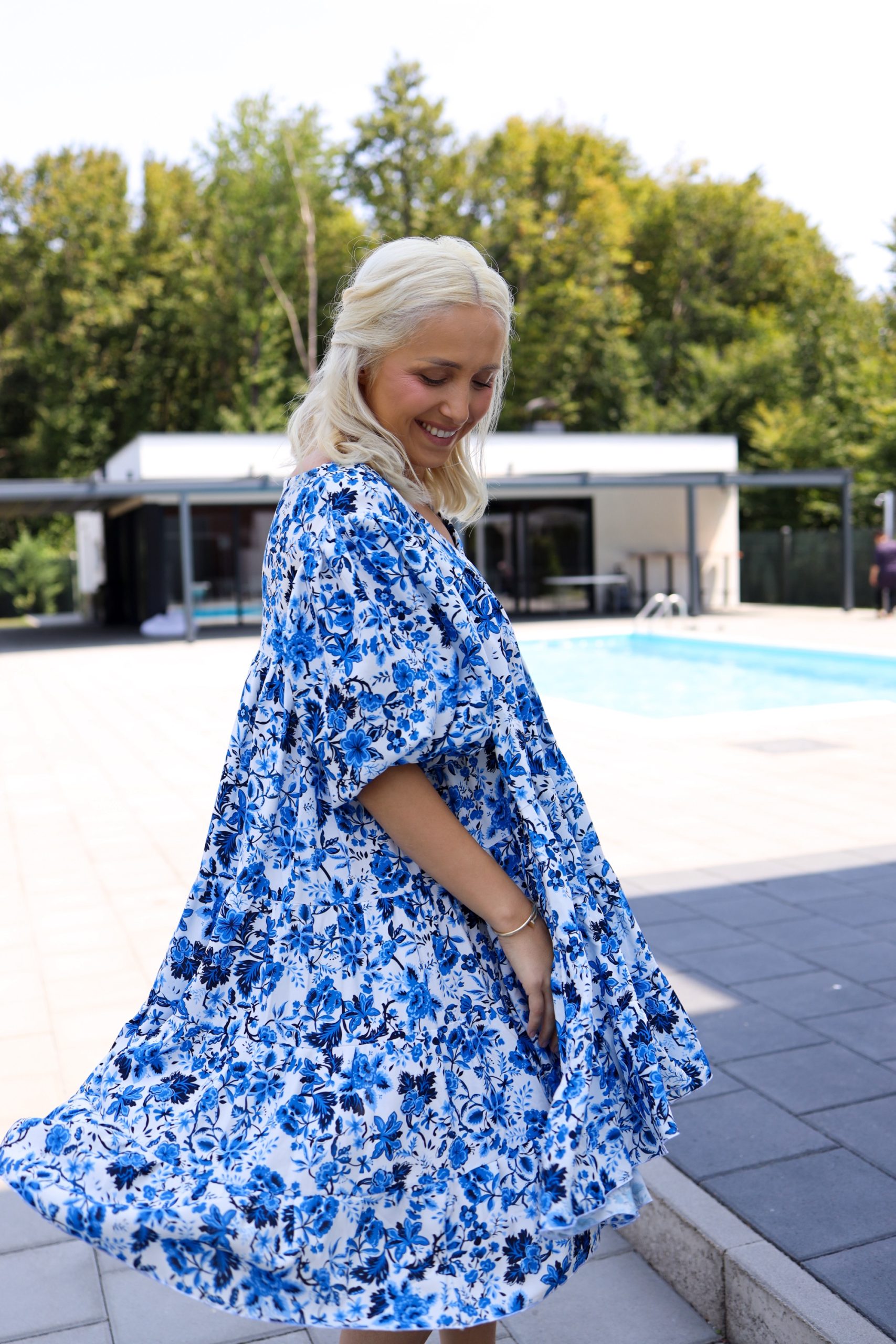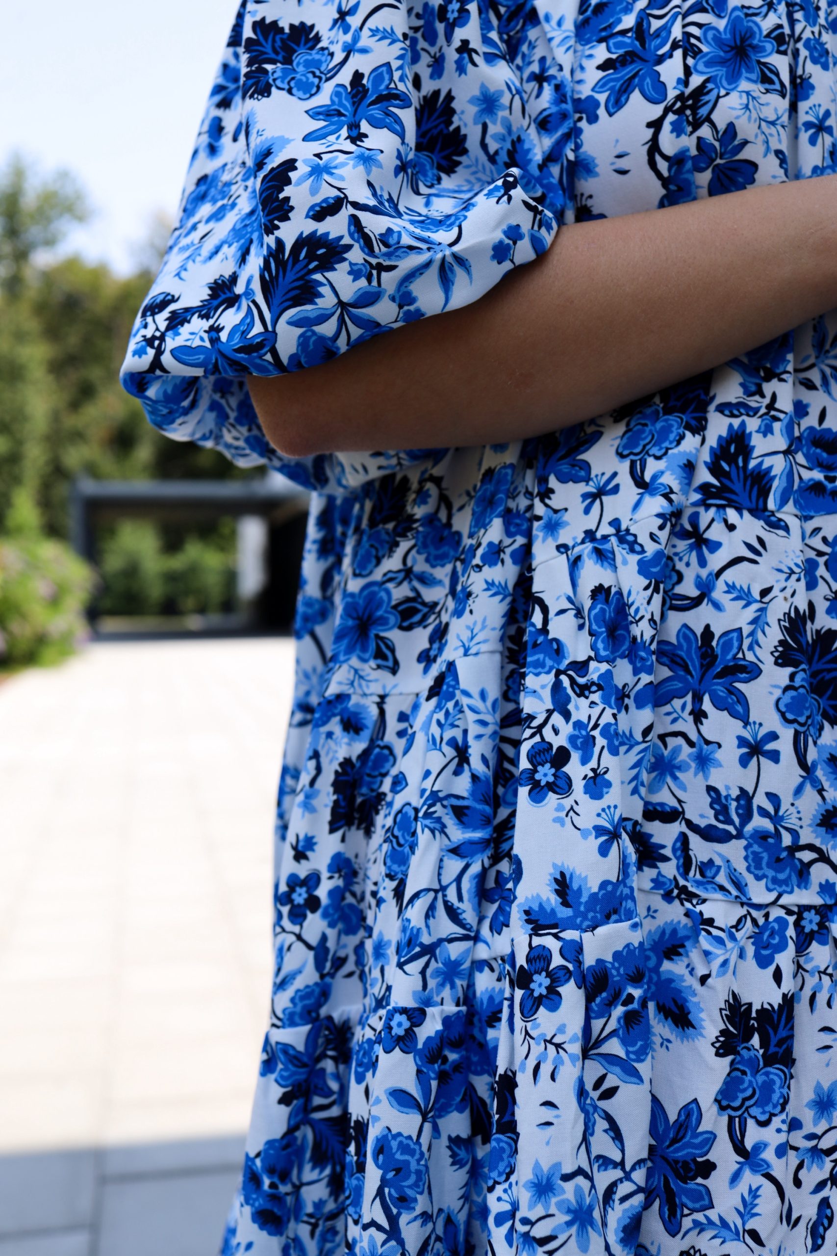 Aria je divna, lepršava haljinica čiji je materijal viskoza. Krojena je da bude univerzalne veličine i da laska svakom obliku tijela, a da je pritom maksimalno udobna. Sitne plave ružice je čine ženstvenom i unikatnom.