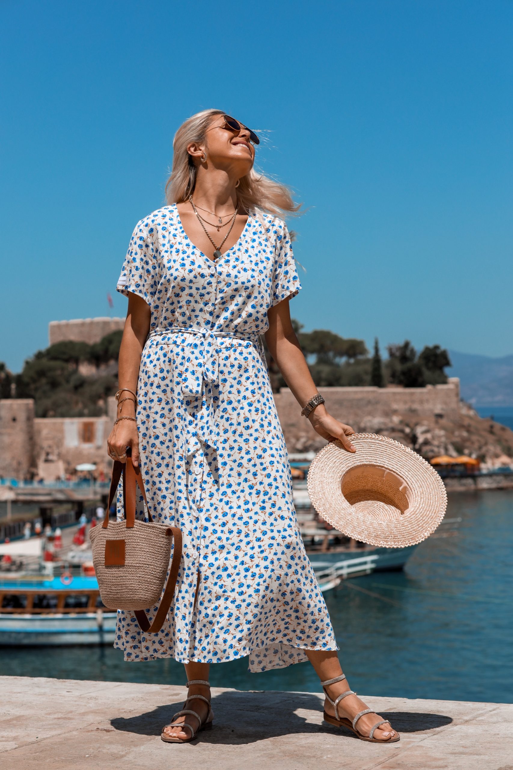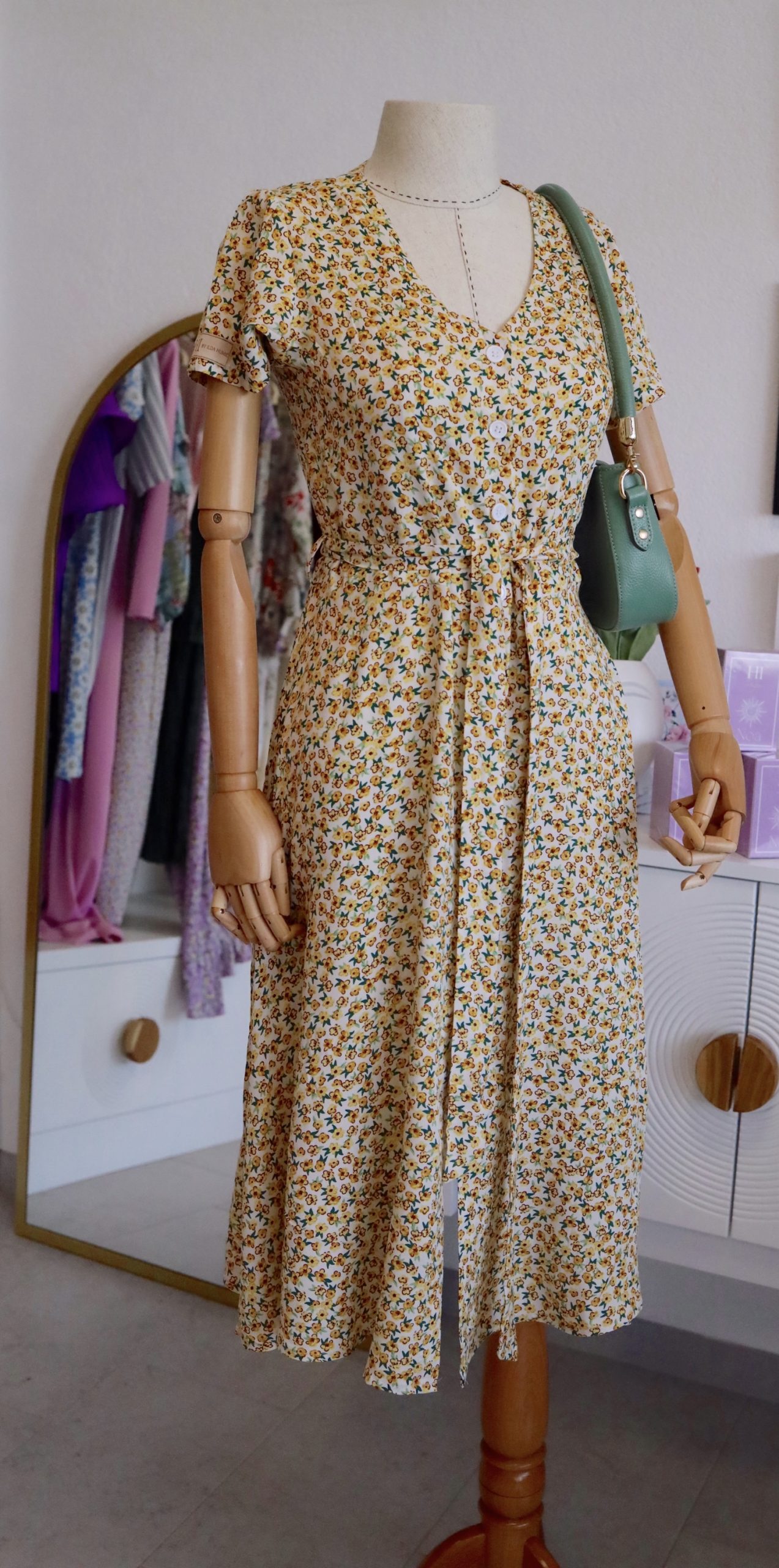 Ljetna haljina Camelia cvijetnog dizajna i kratkih rukava pravljena je od viskoze. Mekana je i lagana što je čini udobnom za nošenje.