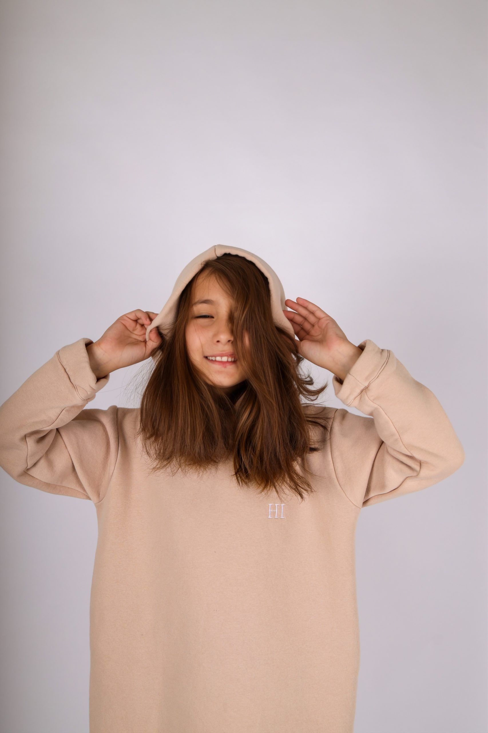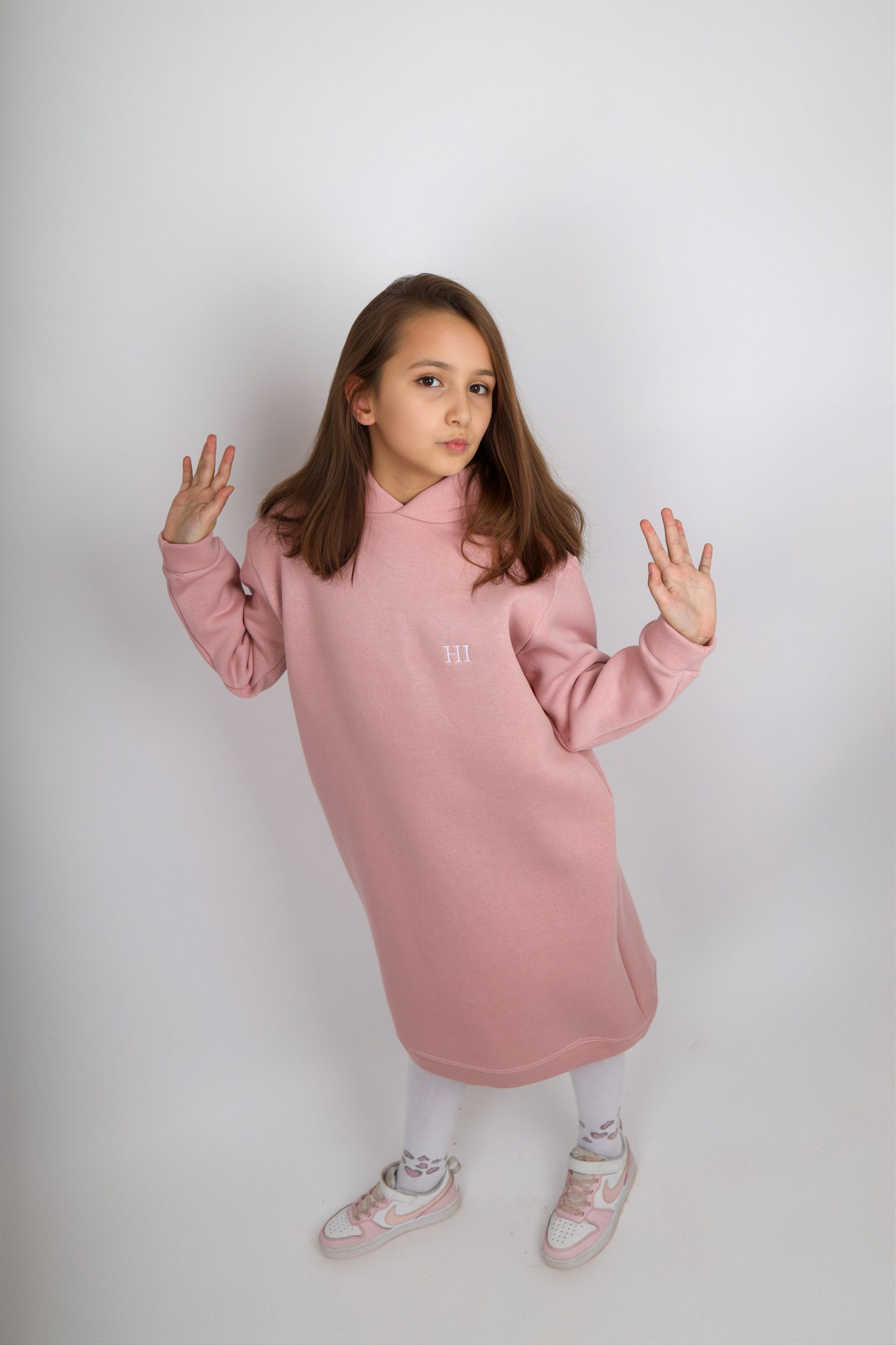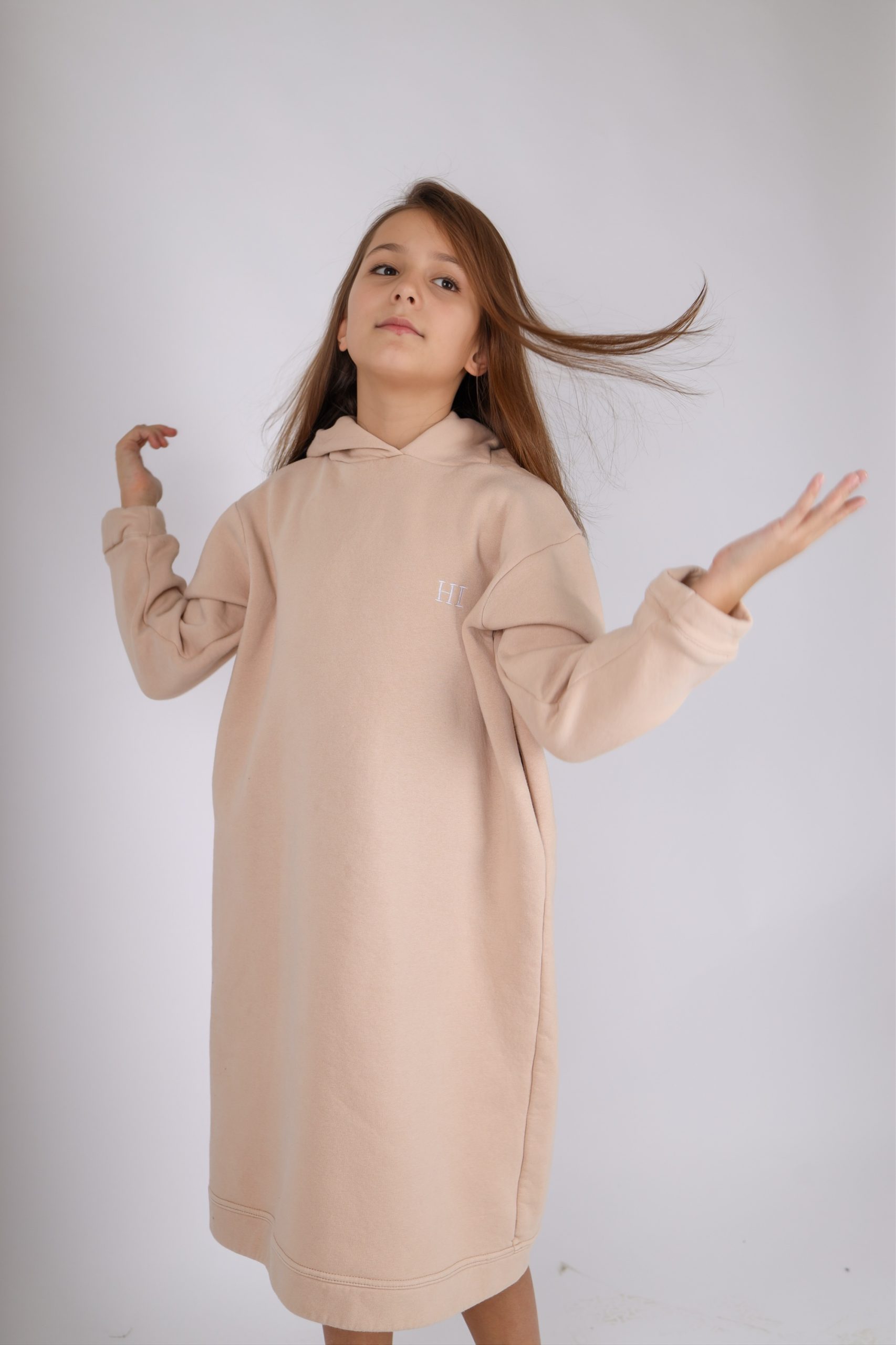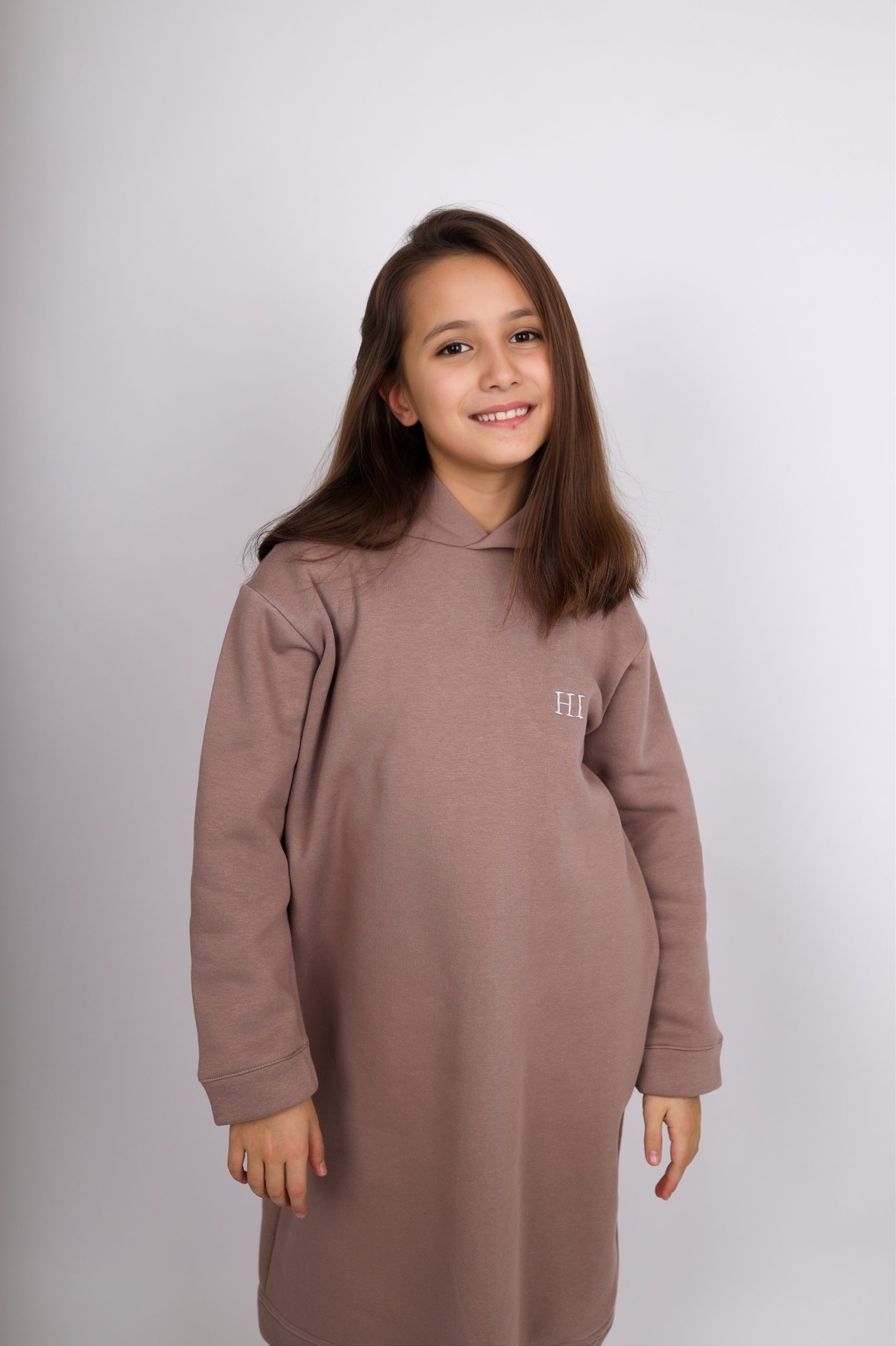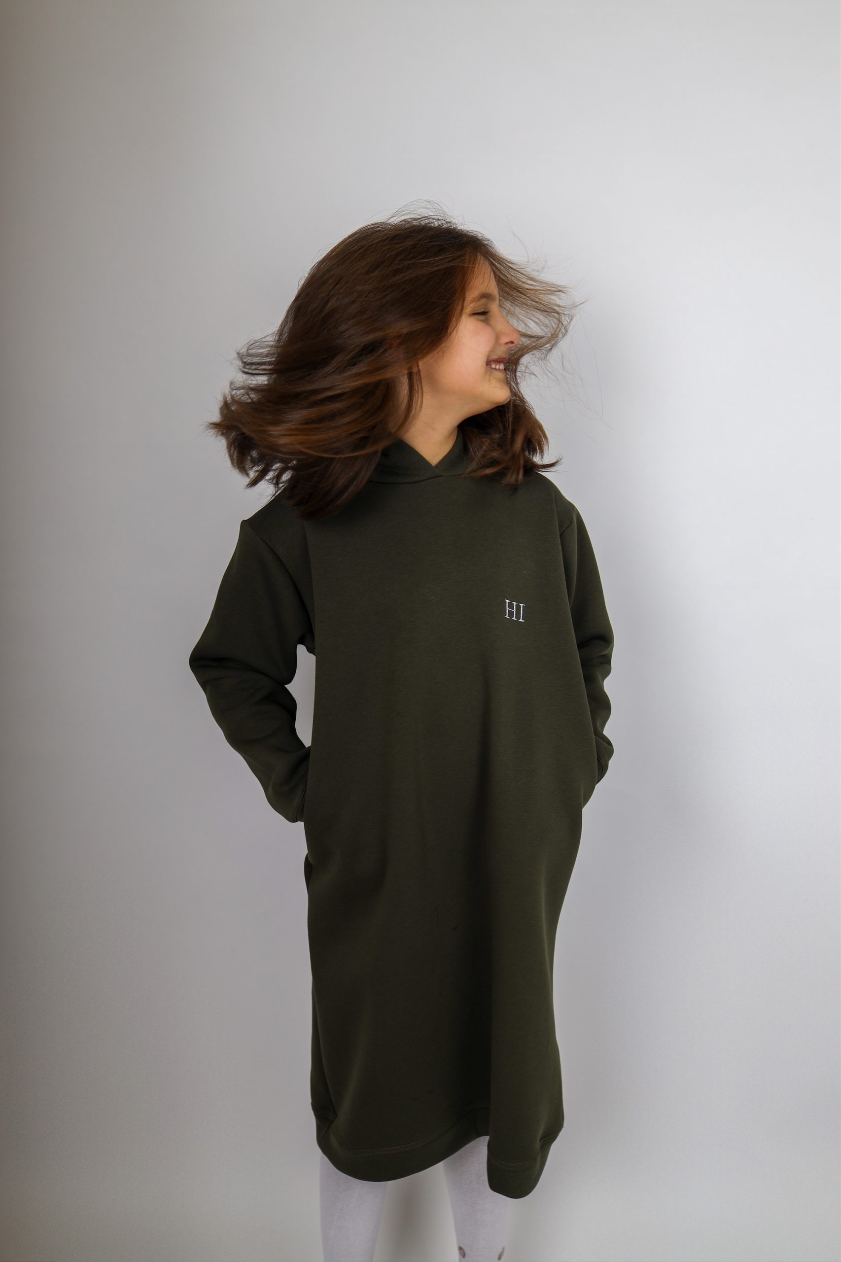 Duga haljina sa kapuljačom i istaknutim volanima namijenjena za djecu.