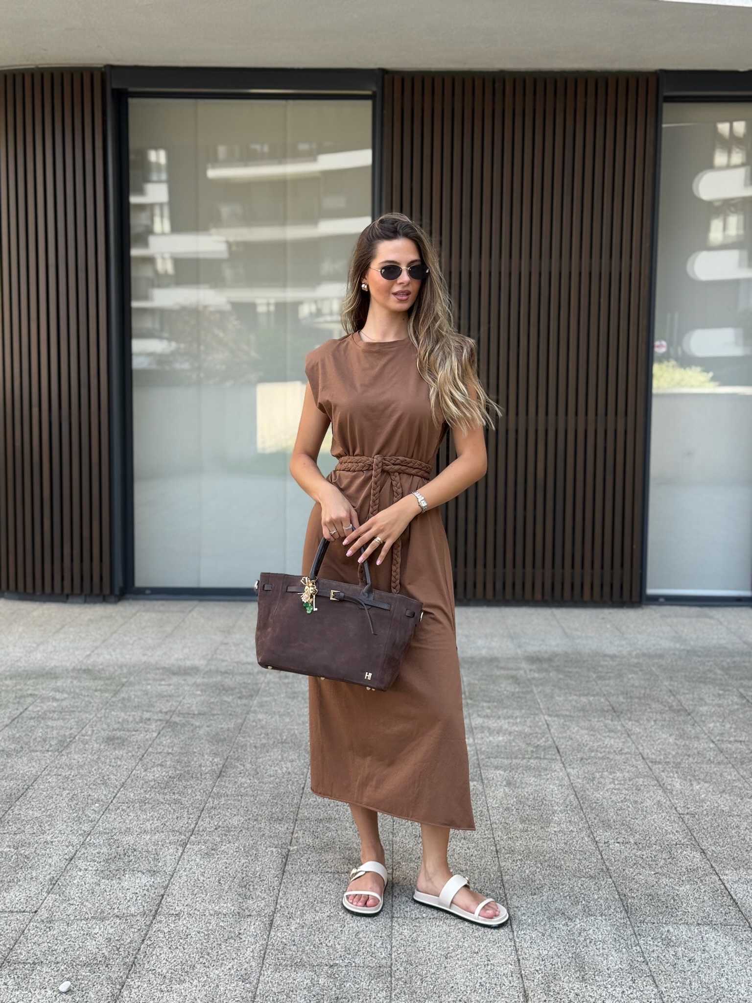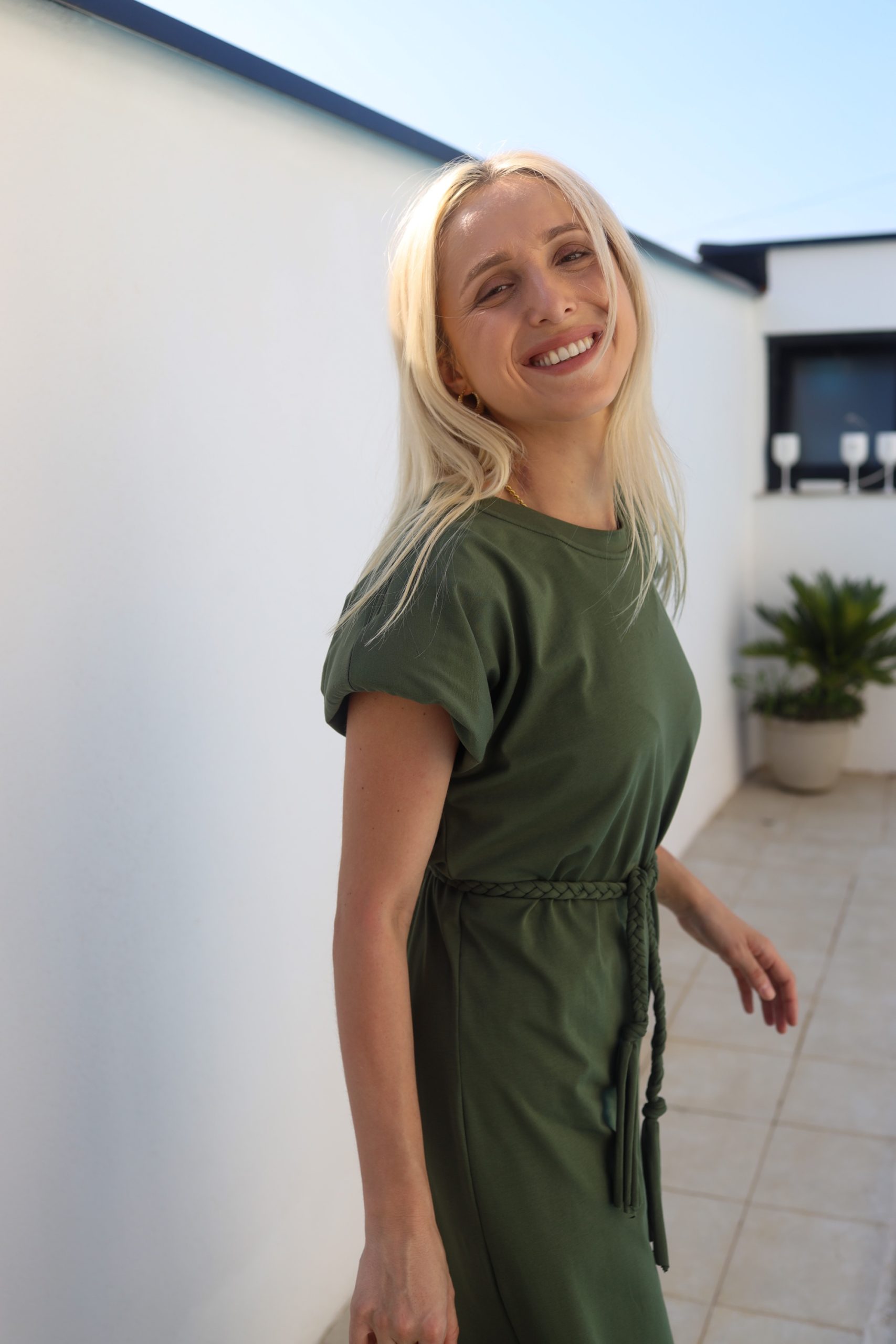 Divna haljina od pamuka koja svojom težinom (od kvaliteta) pada ravno, a pleteni kajšić omogućava da se strukira na kojem god mjestu ti odgovara. Veličina odgovara većem broju, tako da za mene bi bilo bolje da sam uzela XS nego S. Ne smeta mi lično da je oversized i nisam htjela zamijeniti. 😊😊