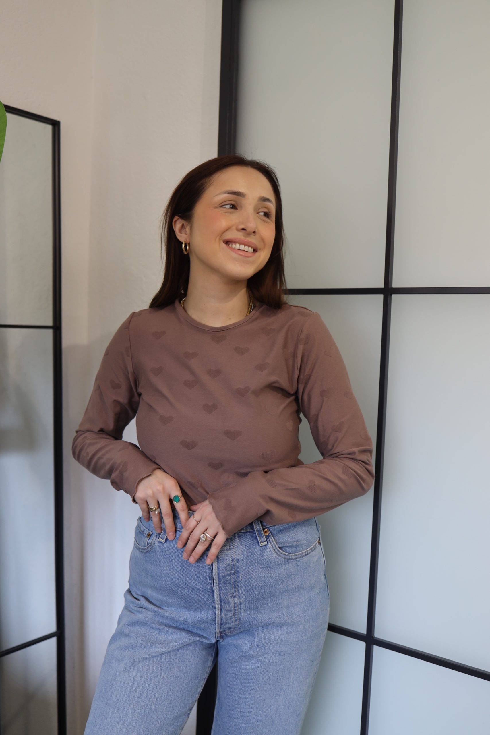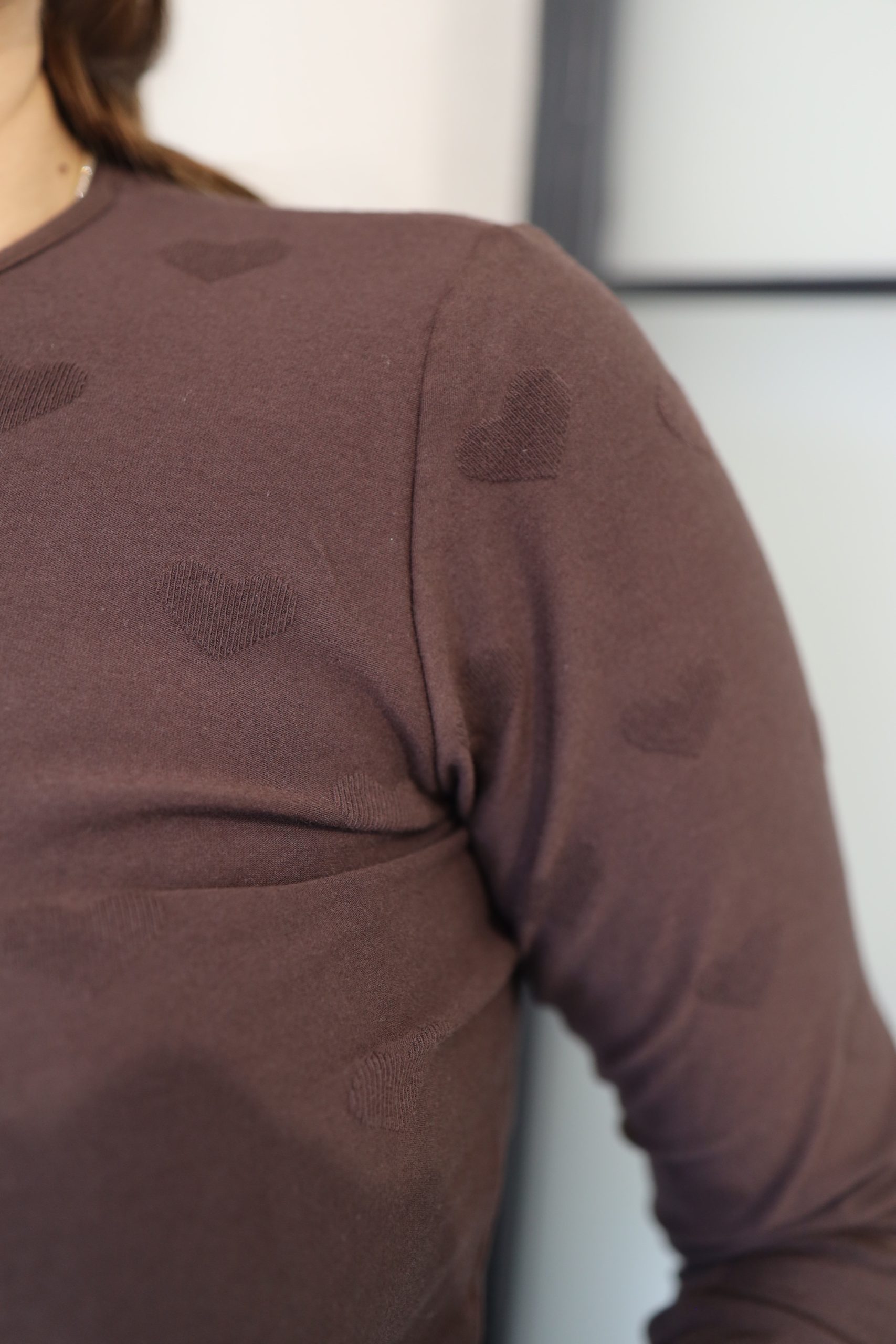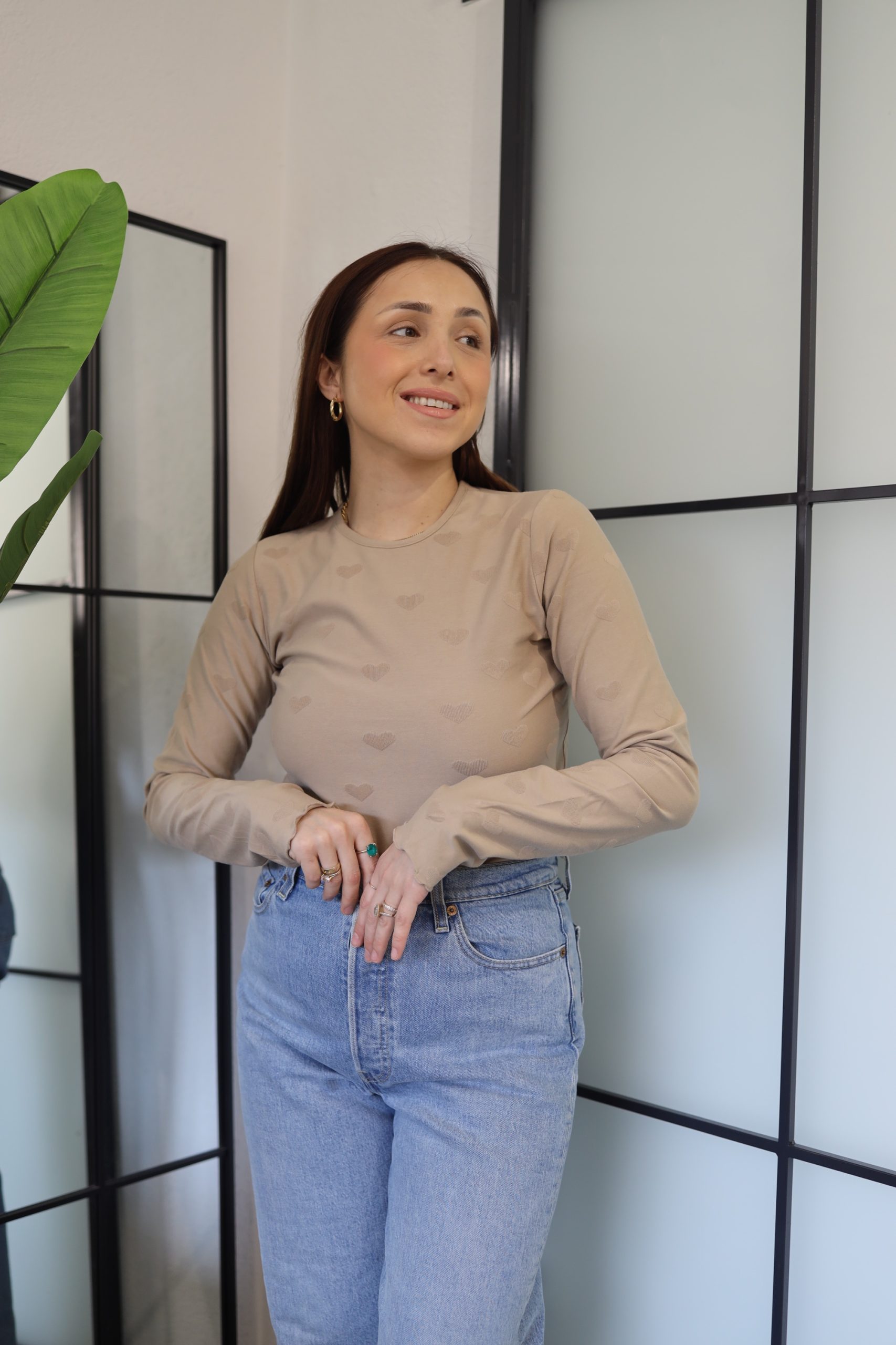 Uska majica dugih rukava s printom srca savršen je spoj udobnosti i stila. Izrađena od mekog pamuka, pruža ugodan osjećaj na koži, dok uski kroj naglašava linije tijela. Idealna je za sve kombinacije.
