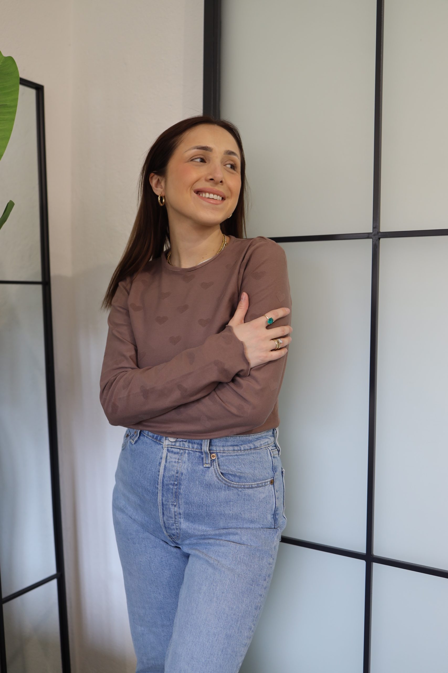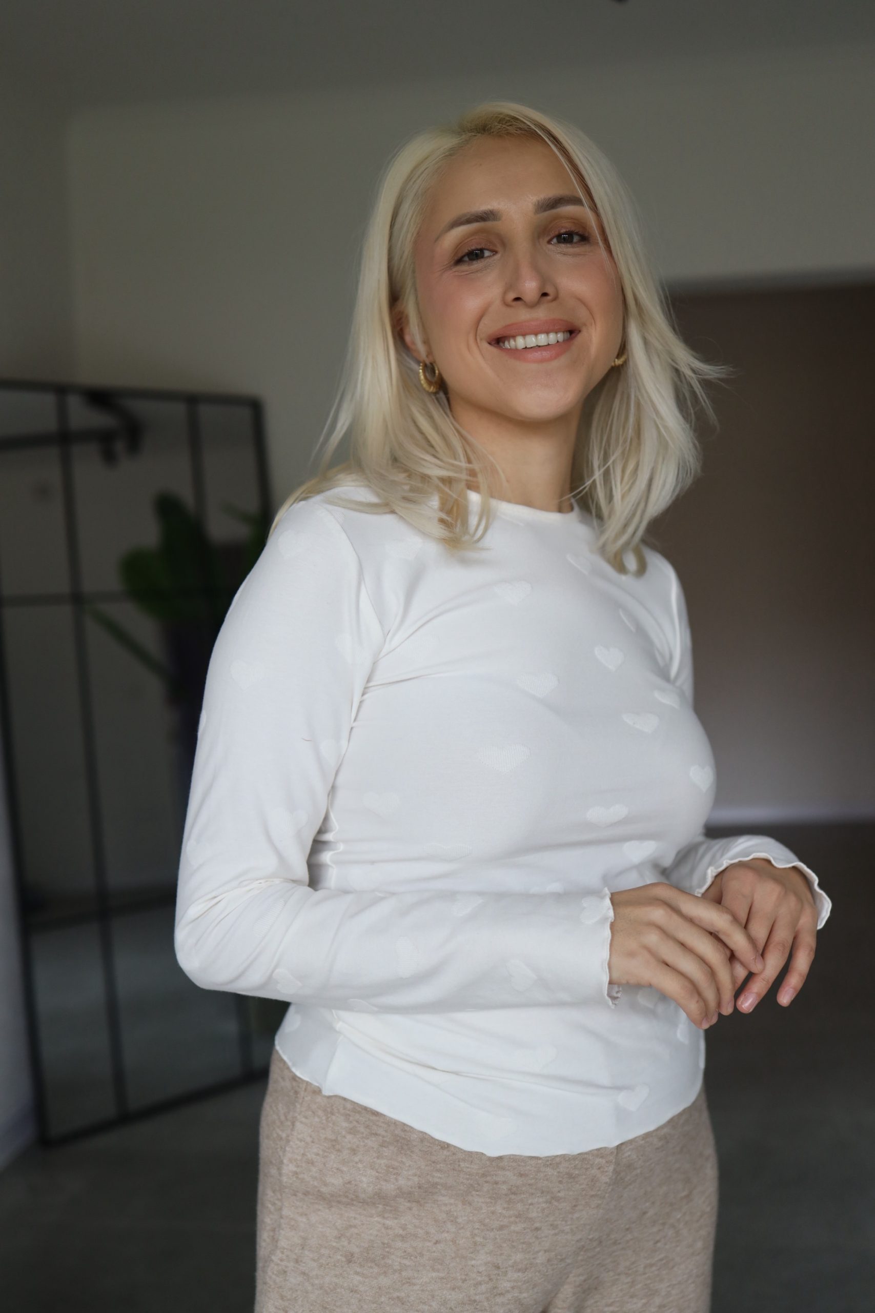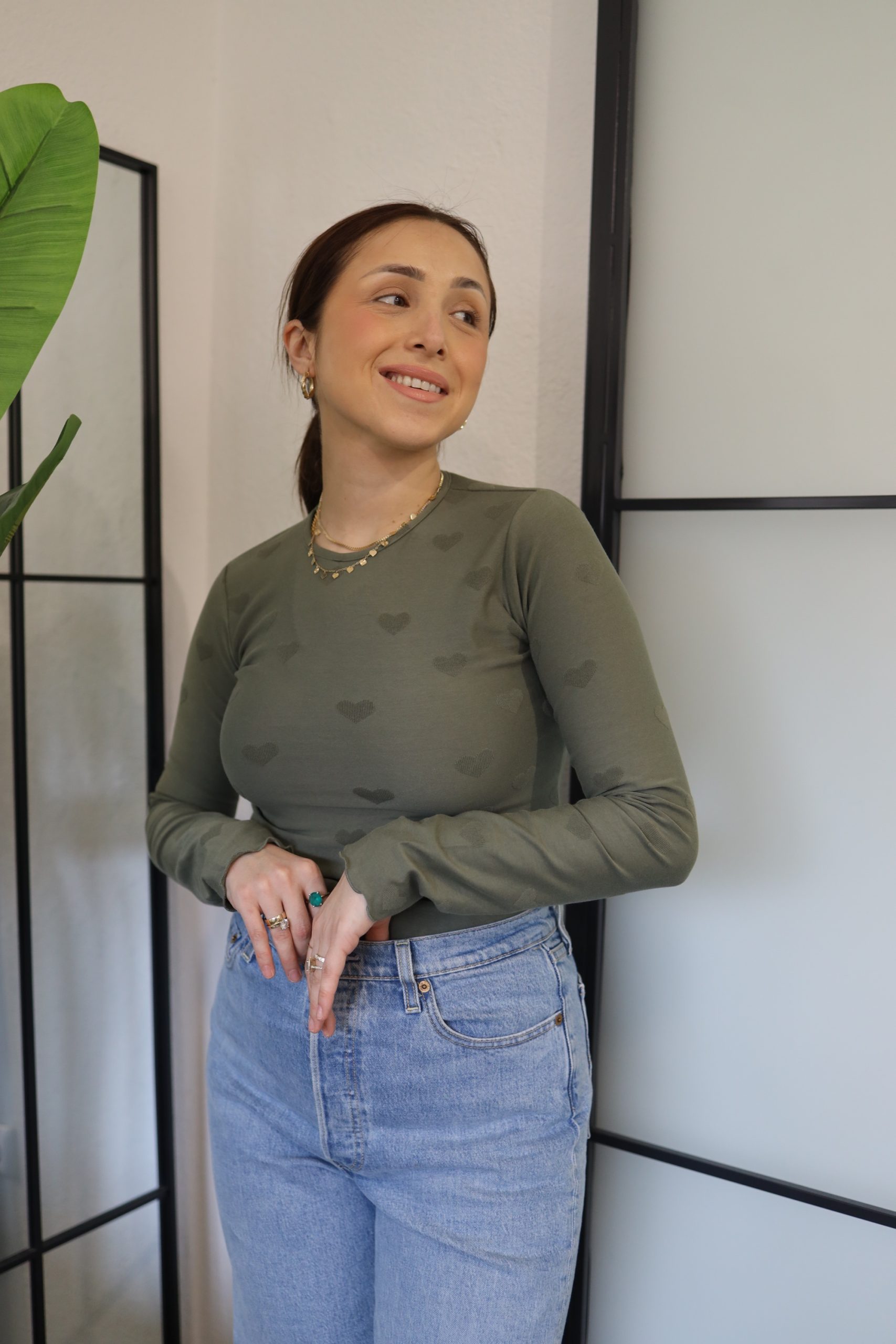 Uska majica dugih rukava s printom srca savršen je spoj udobnosti i stila. Izrađena od mekog pamuka, pruža ugodan osjećaj na koži, dok uski kroj naglašava linije tijela. Idealna je za sve kombinacije.